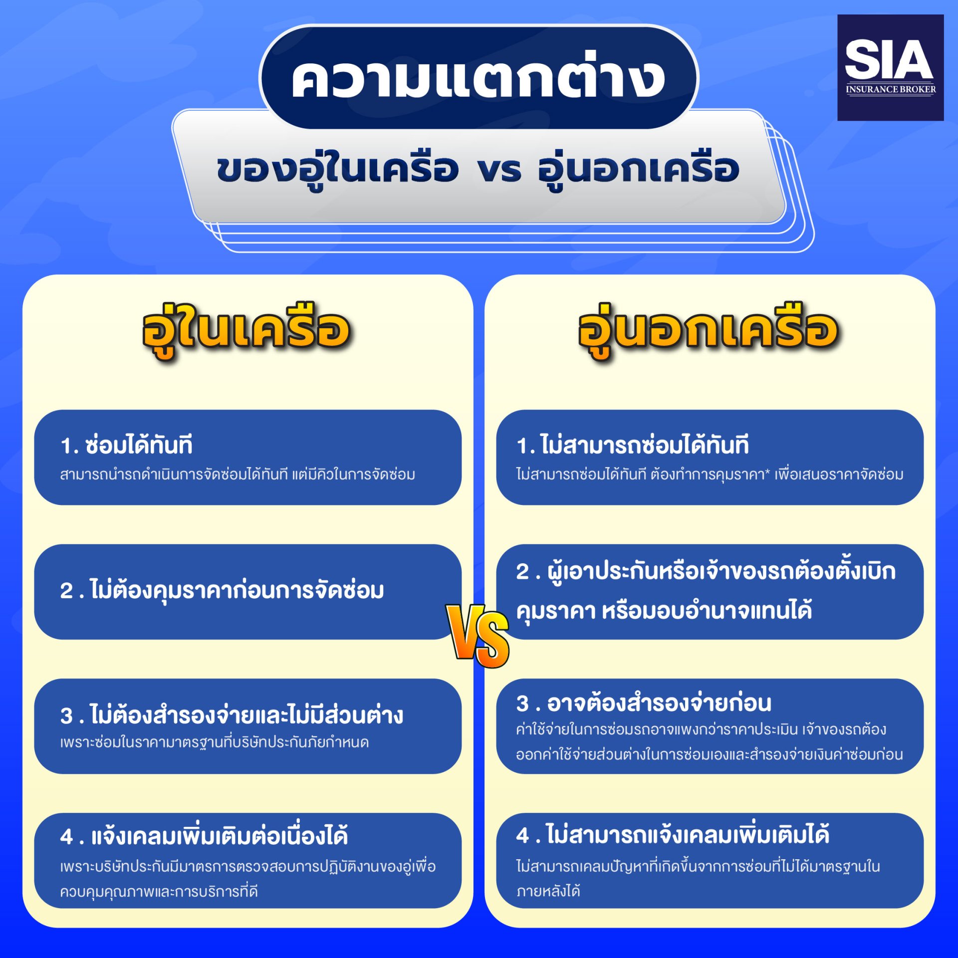 ความแตกต่างระหว่างอู่ในเครือและอู่นอกเครือ