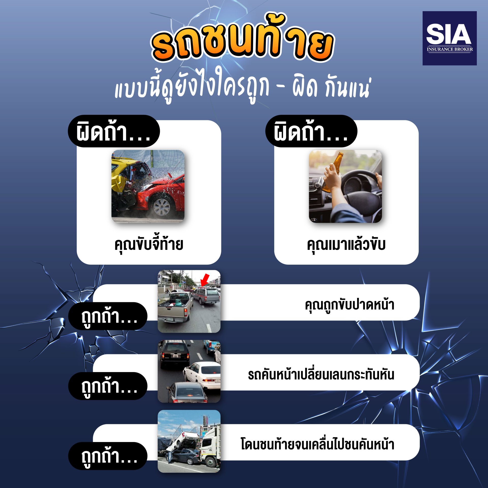 เมื่อเกิดอุบัติเหตุขึ้นแน่นอนว่าจะต้องมีผู้ที่ผิดและถูกเสมอ และหากเป็นการชนท้ายส่วนใหญ่แล้วจะคิดว่าผู้ที่ชนท้ายนั้นเป็นฝ่ายผิด ซึ่งจริงๆ แล้วอาจจะไม่ผิดเสมอไปนะโดยจะต้องดูปัจจัยหลายๆ อย่างร่วมด้วย ดังต่อไปนี้
